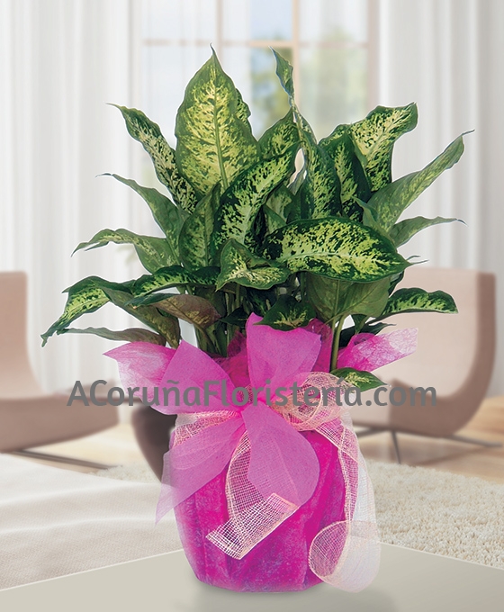 La Planta Dieffenbachia, es una bonita planta de regalo de nuestra floristería online, originaria de Colombia y de Costa Rica. Esta Planta Dieffenbachia es una planta herbácea y perenne, que aunque su crecimiento es variable según su variedad y condiciones de cultivo se puede considerar rápido, pudiendo crecer en el interior de los hogares entre 30 centímetros y el medio metro de altura en tan solo un año. Es una planta ornamental y muy típica en nuestros hogares, por sus tonos verdes y blancos, que siempre combinan bien en nuestros hogares. Una planta de cuidados sencillos, con humedad, calor suave y mucha luminosidad sin sol directo, es la planta de regalo perfecta, para cualquier ocasión.