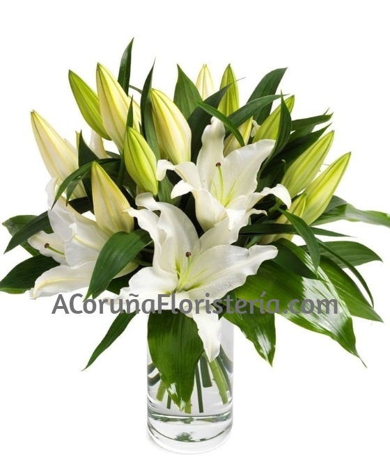 Elegante Ramo Flores Finlandia. Es un ramo sencillo de flores blancas, pero a su vez delicado de presencia y por ello mismo muy bonito. El lilium es conocido comúnmente como azucena o lirio. Constituye un género de flor de alrededor de 110 especies. Se incluye dentro de las familia de las liliáceas. Está considerada por los expertos en flores, como las plantas más bonitas del mundo por su especial elegancia y exotismo. En la floristería online de Floristería Abelleira, creemos que persona homenajeada quedará prendada por la belleza y por su exótico y agradable olor de nuestros arreglos florales entre los que destacan nuestros ramos de flores para regalar.